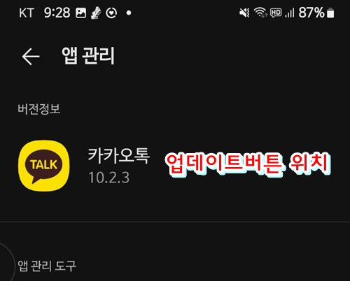 5) 카톡 버전정보 옆의 업데이트버튼을 클릭합니다.