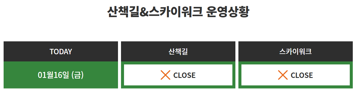 케이블카를 운행해도 산책길과 스카이워크는 기상, 안전 상황에 따라 운영하지 않을 수 있으니